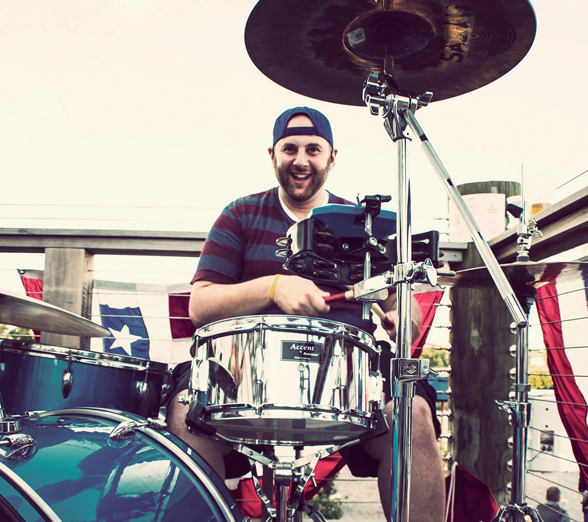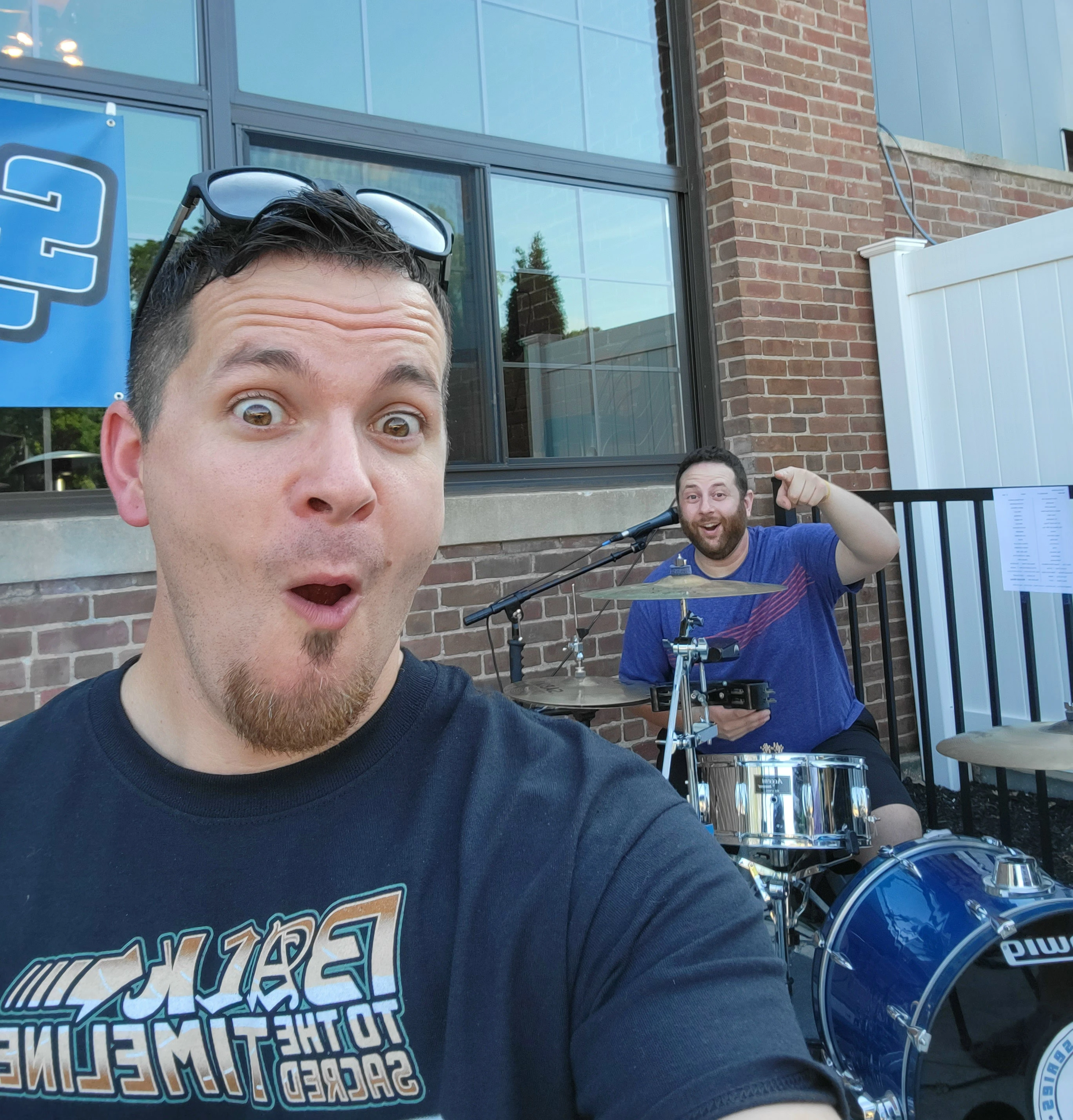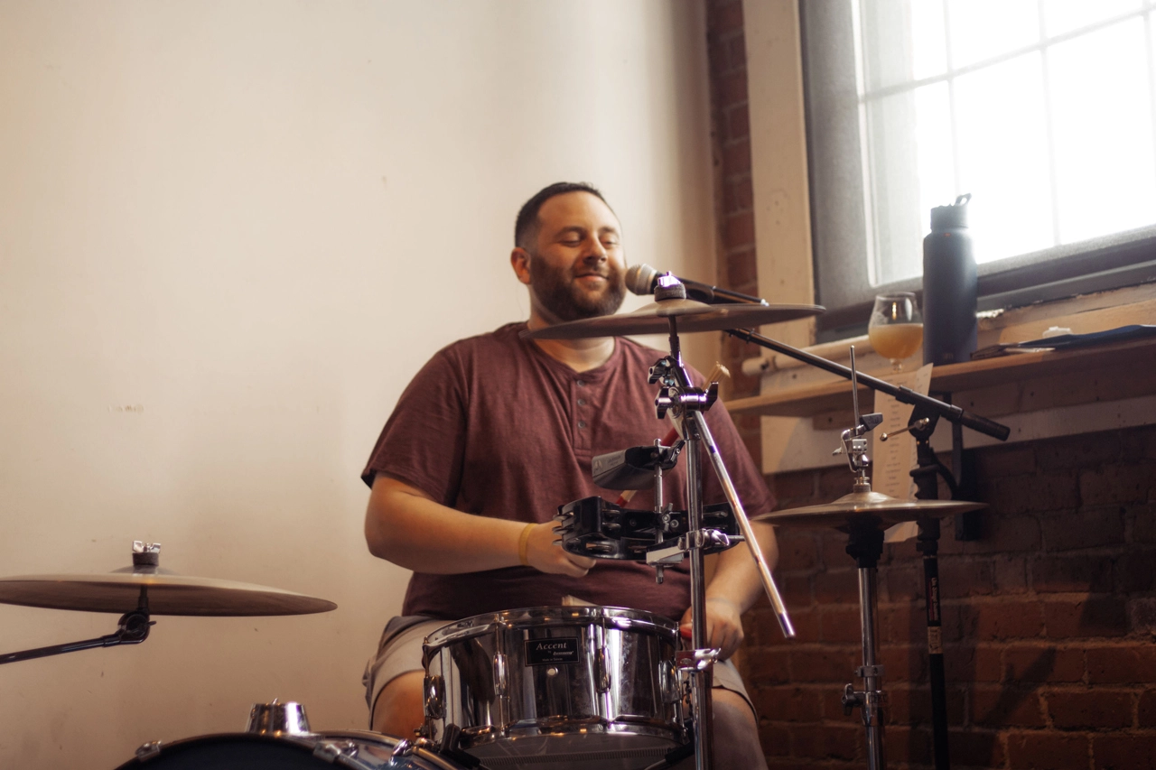 Joe Saad of Smoove Series playing drums at Two Roads Brewing in Stratford, CT
