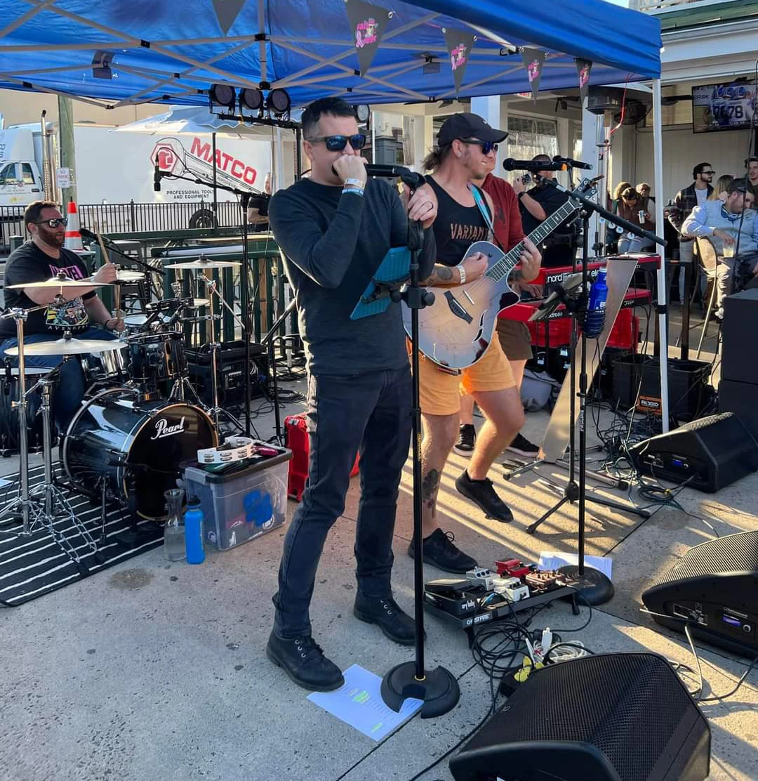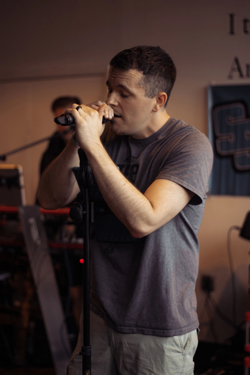 Close up of Mike Angeli of Smoove Series singing at Two Roads Brewing in Stratford, CT