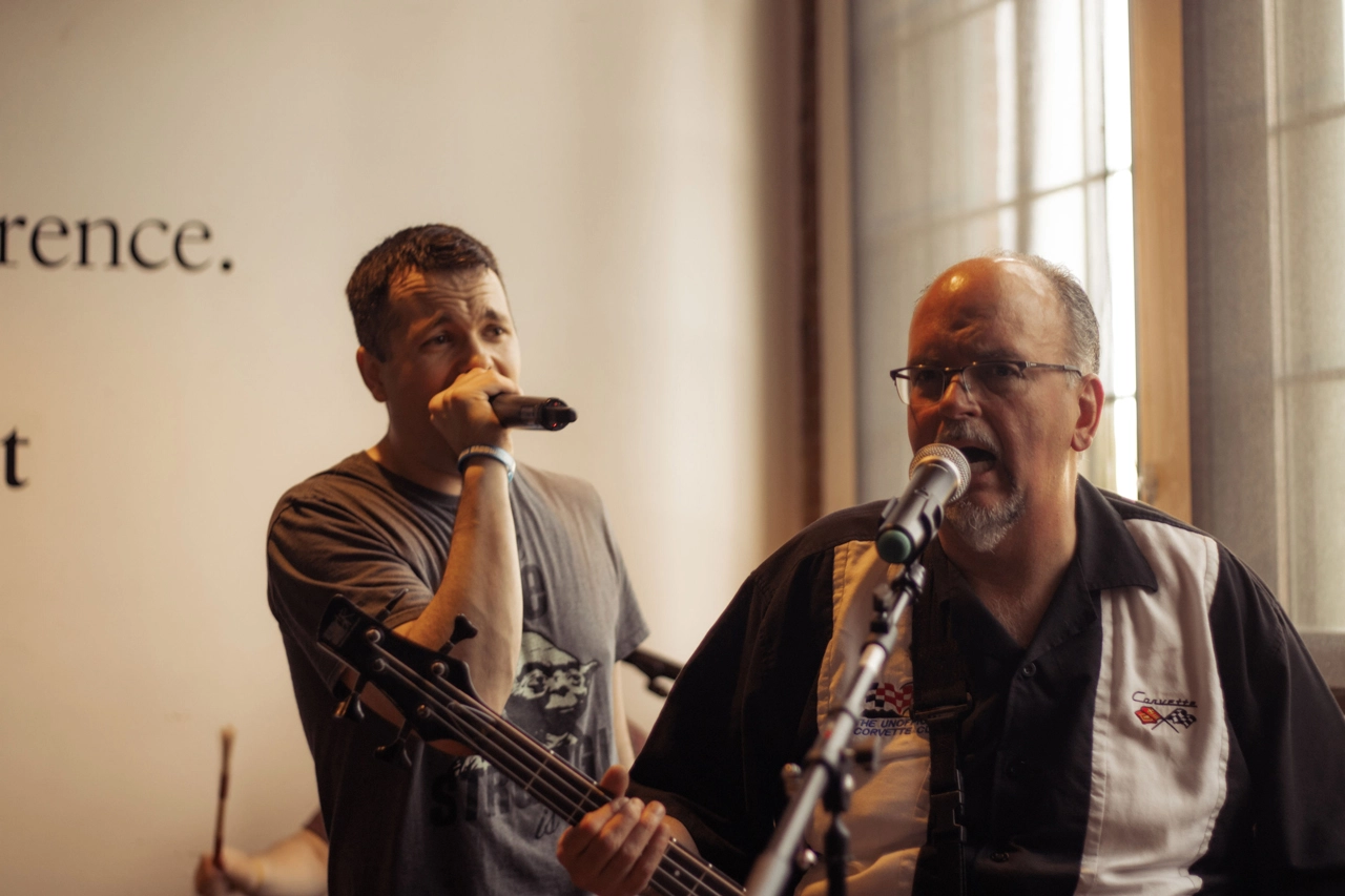 Joe Scovill & Terry Dion of Smoove Series singing together at Two Roads Brewing in Stratford, CT