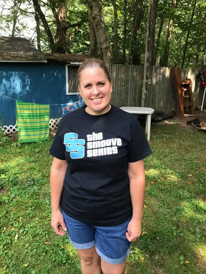 Smoove Series fan showing off his Smoove Series tshirt he is wearing